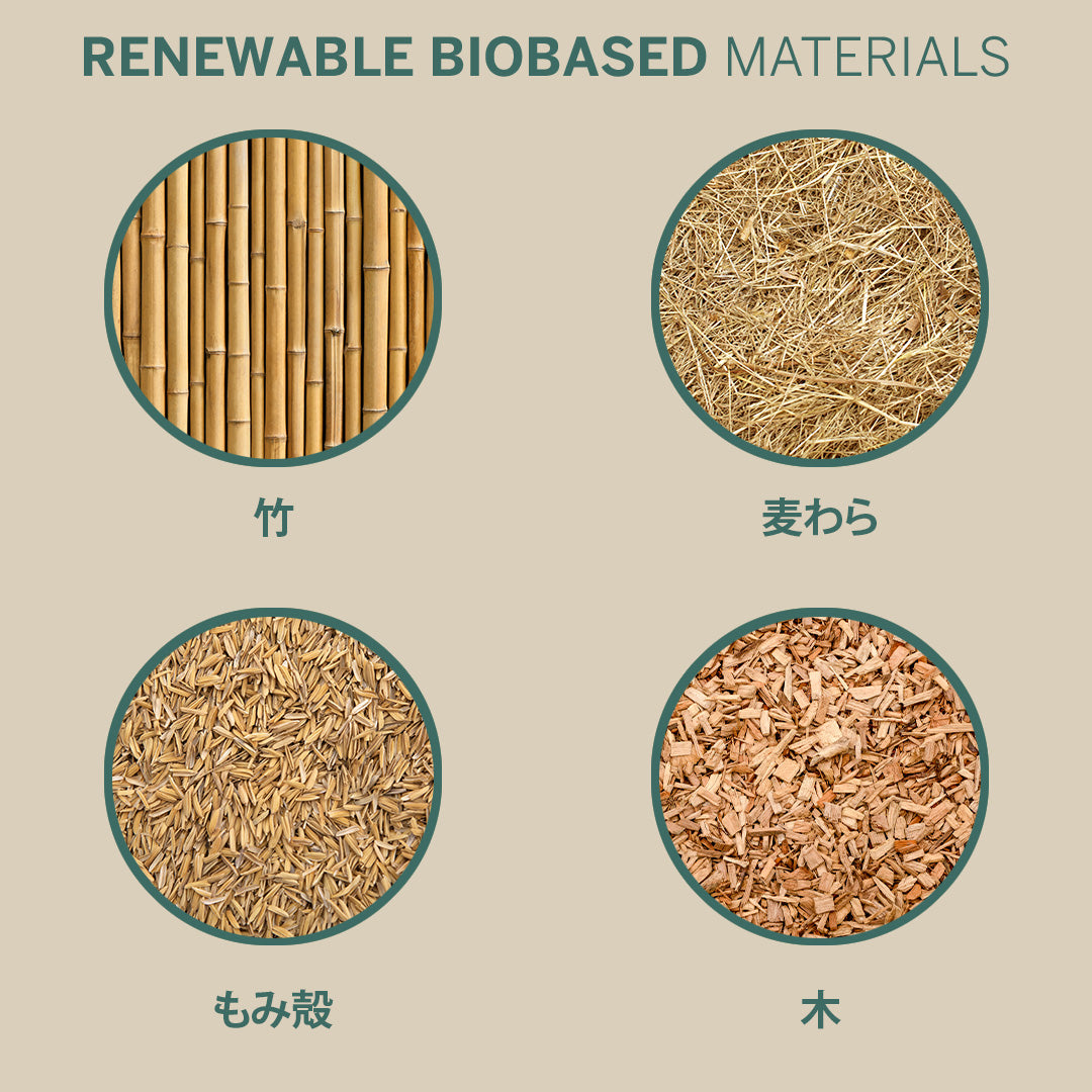 - EVA 50%, POE 30%, バイオ繊維 20%
