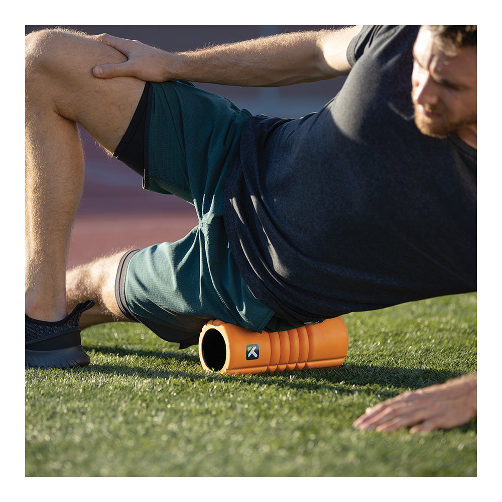 外出先でのフォームローリングに最適なコンパクトサイズ。マッサージセラピストの手技のような感覚を再現した特殊構造により、簡単にセルフケアが可能