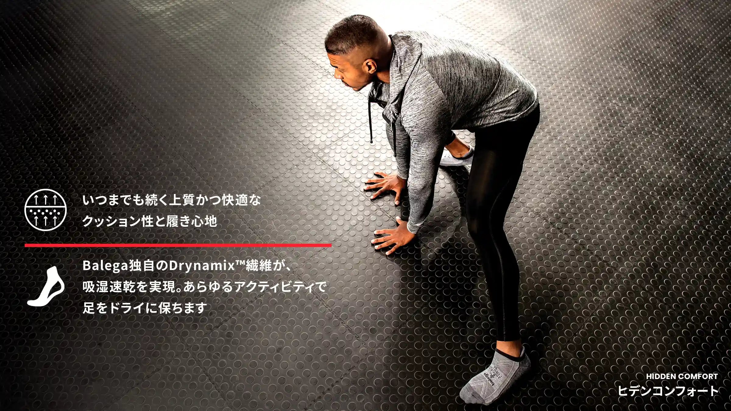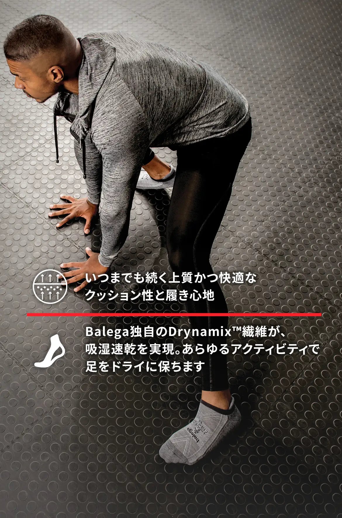 BALEGA独自の吸湿・速乾性に優れた糸であるDrynamix™ (ドライナミクス)を採用